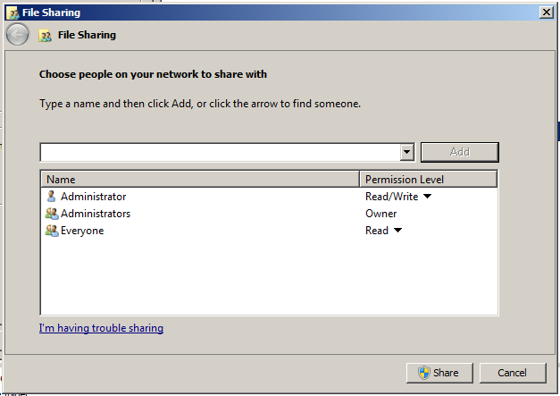 Be sure with your share everyone has read access and put the java folder you copied from the appdata folder to it.